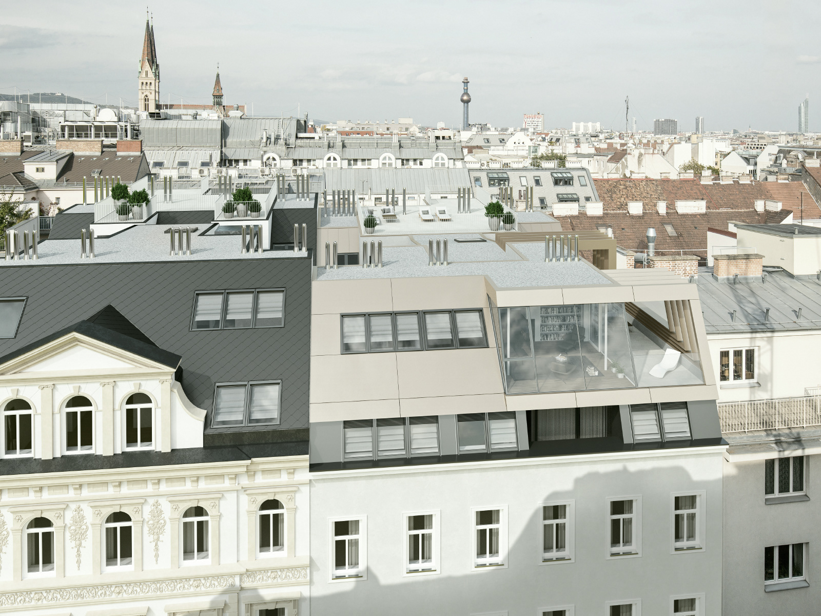 Schaubilder für ein Dachgeschoß in Wien für Fourreal, nach einem Entwurf von HOT Architektur